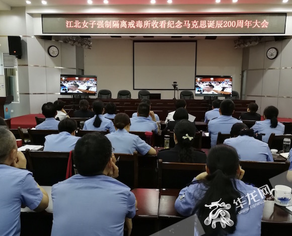 ??? 江北女子強制隔離戒毒所收看紀念馬克思誕辰200周年大會(huì )直播。市司法局供圖 華龍網(wǎng)發(fā)