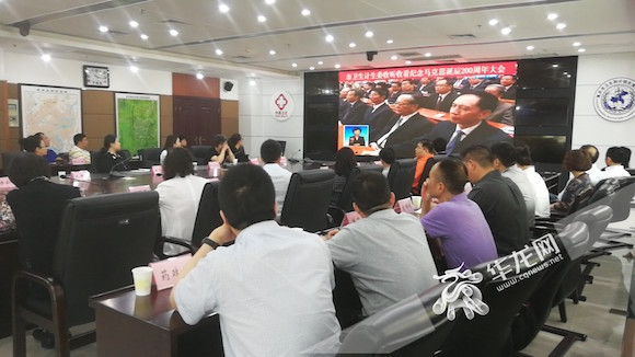 ????市衛生計生系統組織集中收看紀念馬克思誕辰200周年大會(huì )。 記者 謝鵬飛 攝