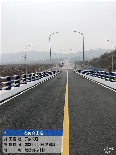 該項目是鄉村振興計劃項目,位于跳磴鎮石林村,東接黃桷樹(shù)路,西接雙石路,總投資1634.4萬(wàn)元,全長(cháng)633米,路幅寬度7米,包含農村公路347米、引道131米、橋梁155米,于2020年1月開(kāi)工建設。