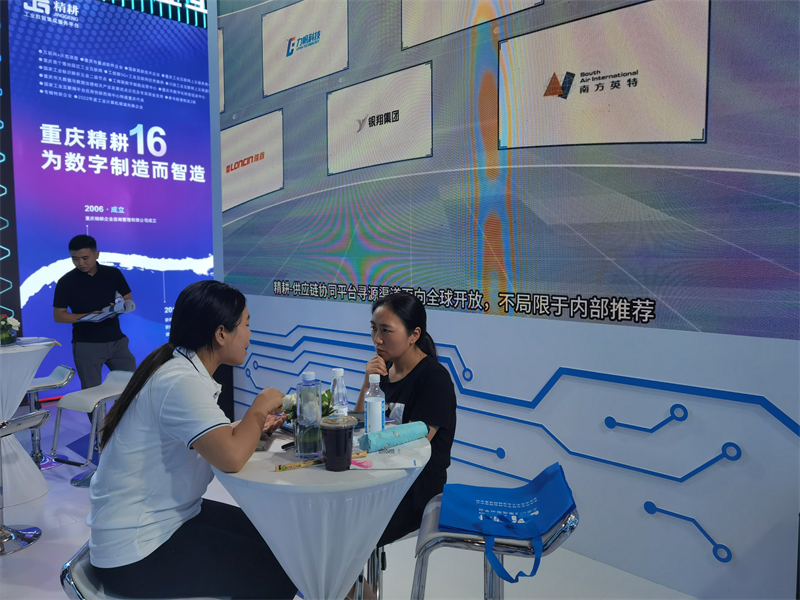 展會(huì )翌日,在重慶精耕工業(yè)互聯(lián)網(wǎng)有限公司展臺,有客商慕名而來(lái),或咨詢(xún),或與企業(yè)工作人員深入交流,現場(chǎng)氣氛熱烈融洽。據精耕公司市場(chǎng)經(jīng)理周于豐介紹,兩日來(lái),展位共發(fā)放資料2000余份,接待客商約800人。工業(yè)互聯(lián)網(wǎng)的魅力,正是吸引意向客戶(hù)的“秘密武器”。